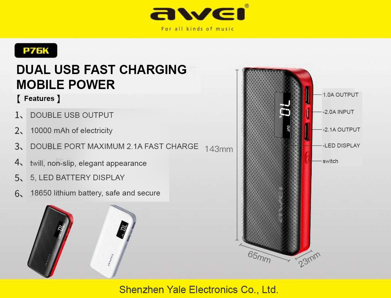 -Power Bank P76K  Awei 10000mAh