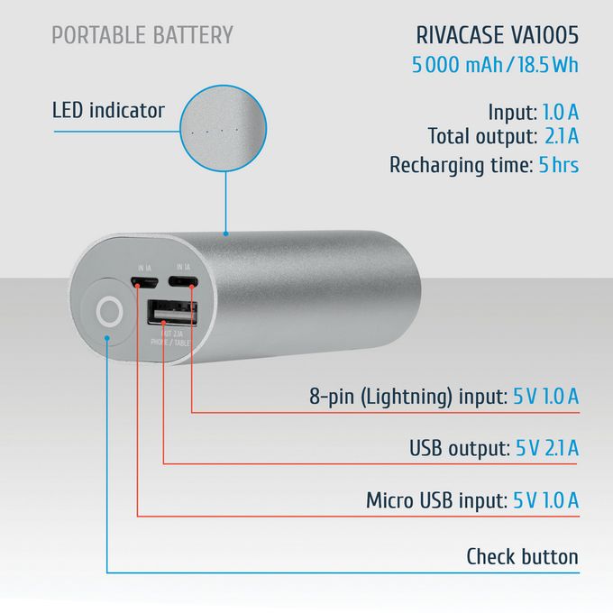 La batterie VA2004 est compatible avec tous les modèles de smartphones, tablettes et autres équipements mobiles les plus répandus. Grâce à ses 2 A de sortie ,elle rechargera vos appareils très rapidement. Il vous suffira juste de connecter votre appareil pour que la charge commence. Fine ,légère et fiable ,la batterie VA2204 est idéale pour les voyageurs souhaitant recharger leur équipement électronique mobile en toute situation. Avec son design soigné et compact ,la batterie se transporte aisément dans votre sac ou votre poche et grâce au câble intégré, plus de soucis ,ils vous suivent partout! Batterie en Li-polymère Puissance : 4000 Mah Alimentation CC : micro USB 5 V / 1 A Sortie CC : USB 5V / 2 A 4 indicateurs LED pour le niveau de charge restant. Accepte plus de 500 cycles de charge et de décharge Câbles intégrés Protection contre les surcharges , fuites de courant , surintensités et court-circuit Allumage/arrêt